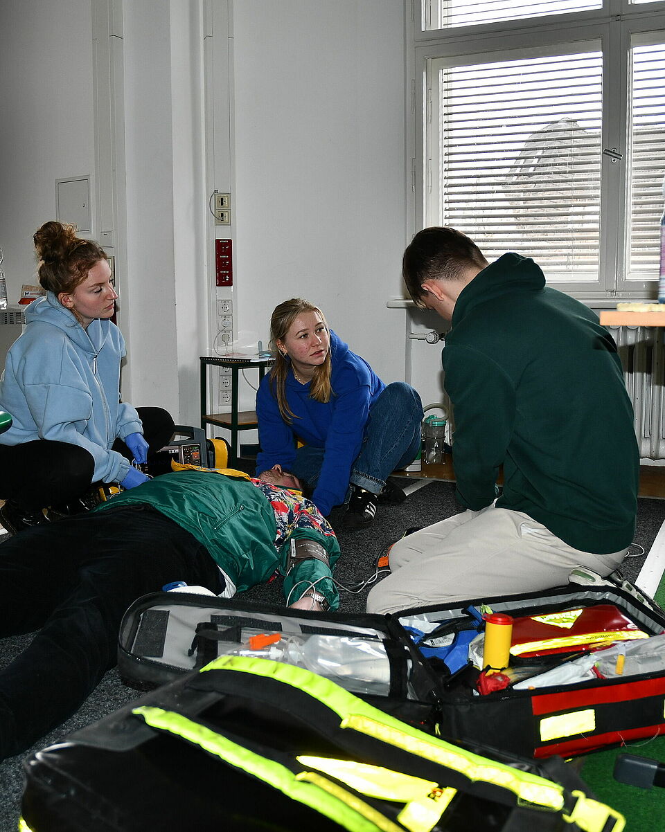 Jeder darf einen Einsatz simulieren, eigenständig eine Diagnose stellen und die Patient/innen versorgen; und auch die Vorgehensweise der Gruppe anhand einer Checkliste bewerten.